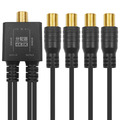 アンテナ4分配器 極細ケーブル一体型 10cm ブラック F型接栓メス